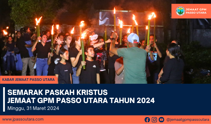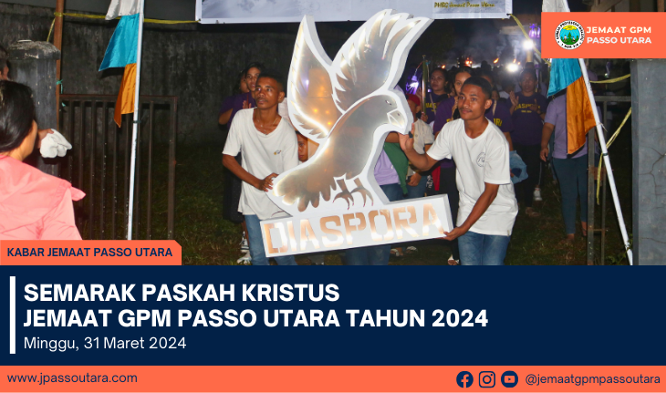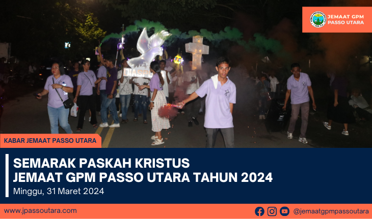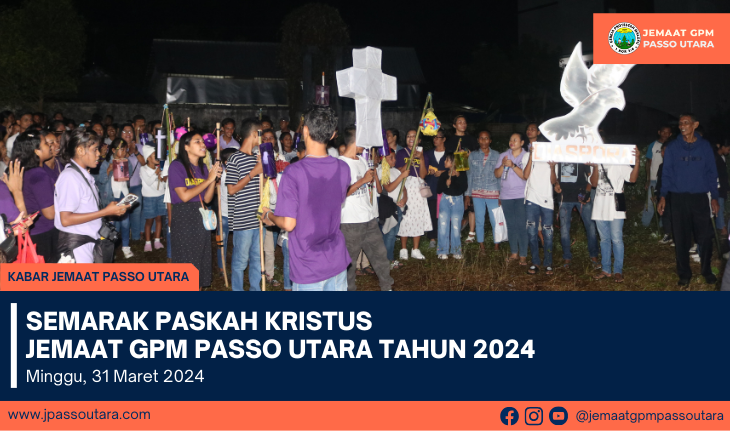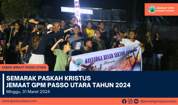 Jemaat GPM Passo Utara melaksanakan Perayaan Paskah Yesus Kristus. kegiatan diawali dengan Perayaan Paskah di Masing-Masing Sektor yaitu Diaspora, Siloam, Sion, Yarden, serta Hermon yang dilanjutkan dengan arak-arakan obor perayaan paskah.